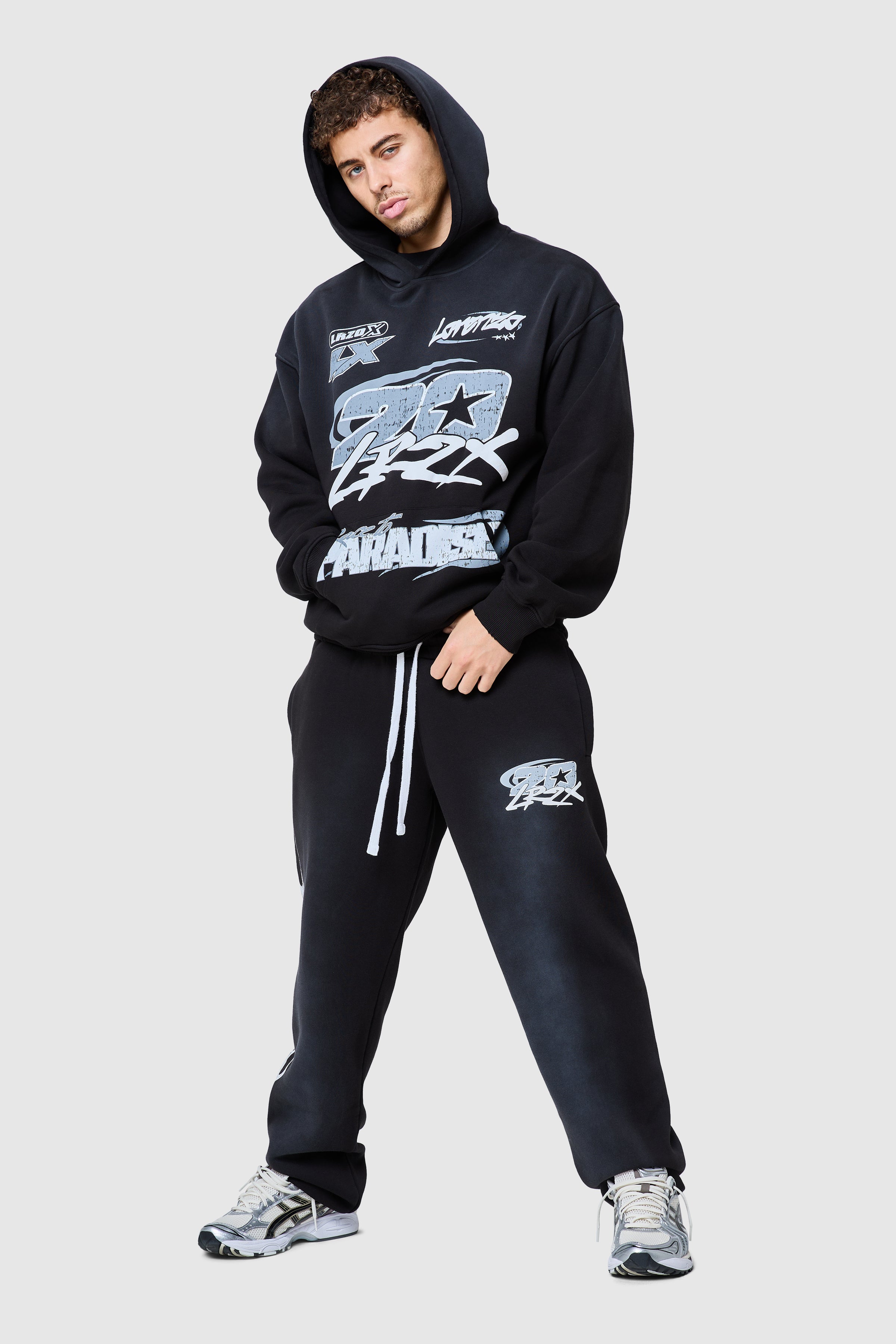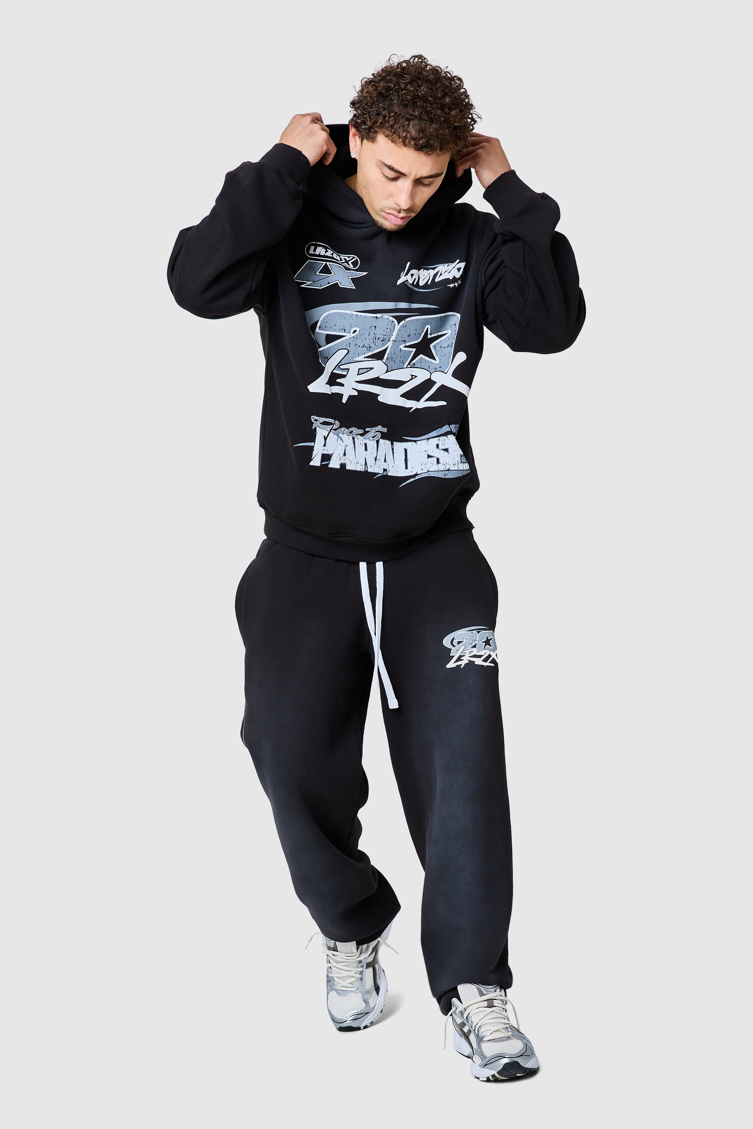 Featuring a relaxed, drop-shoulder fit, the LRZX Tracksuit blends comfort and style with 100% cotton construction. Highlighted by a graphic screen and puff print design, it’s finished with ribbed cuffs and stacked ankle for a classic fit.