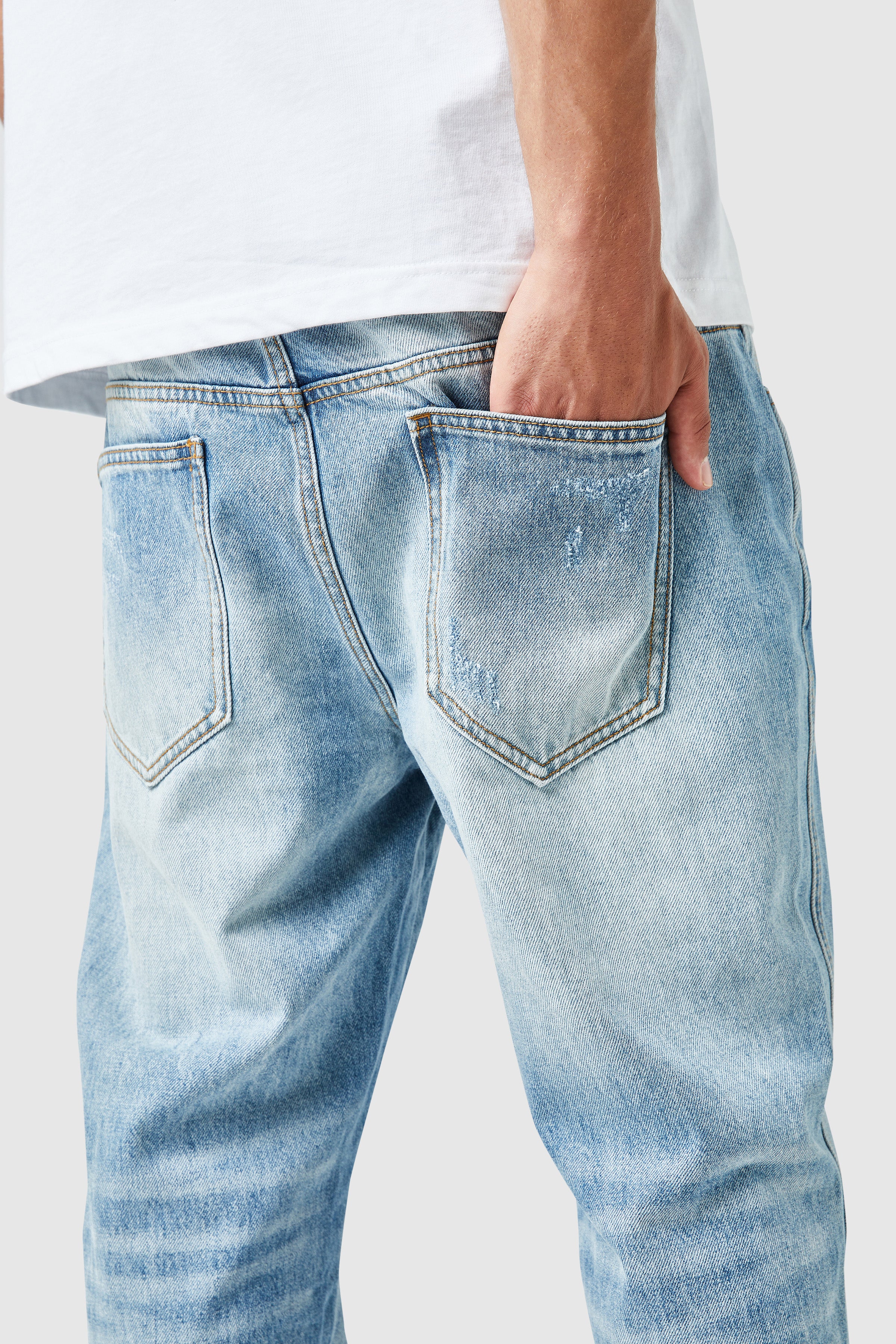 A signature fit in the mens ripped jeans category, designed for impact and comfort.