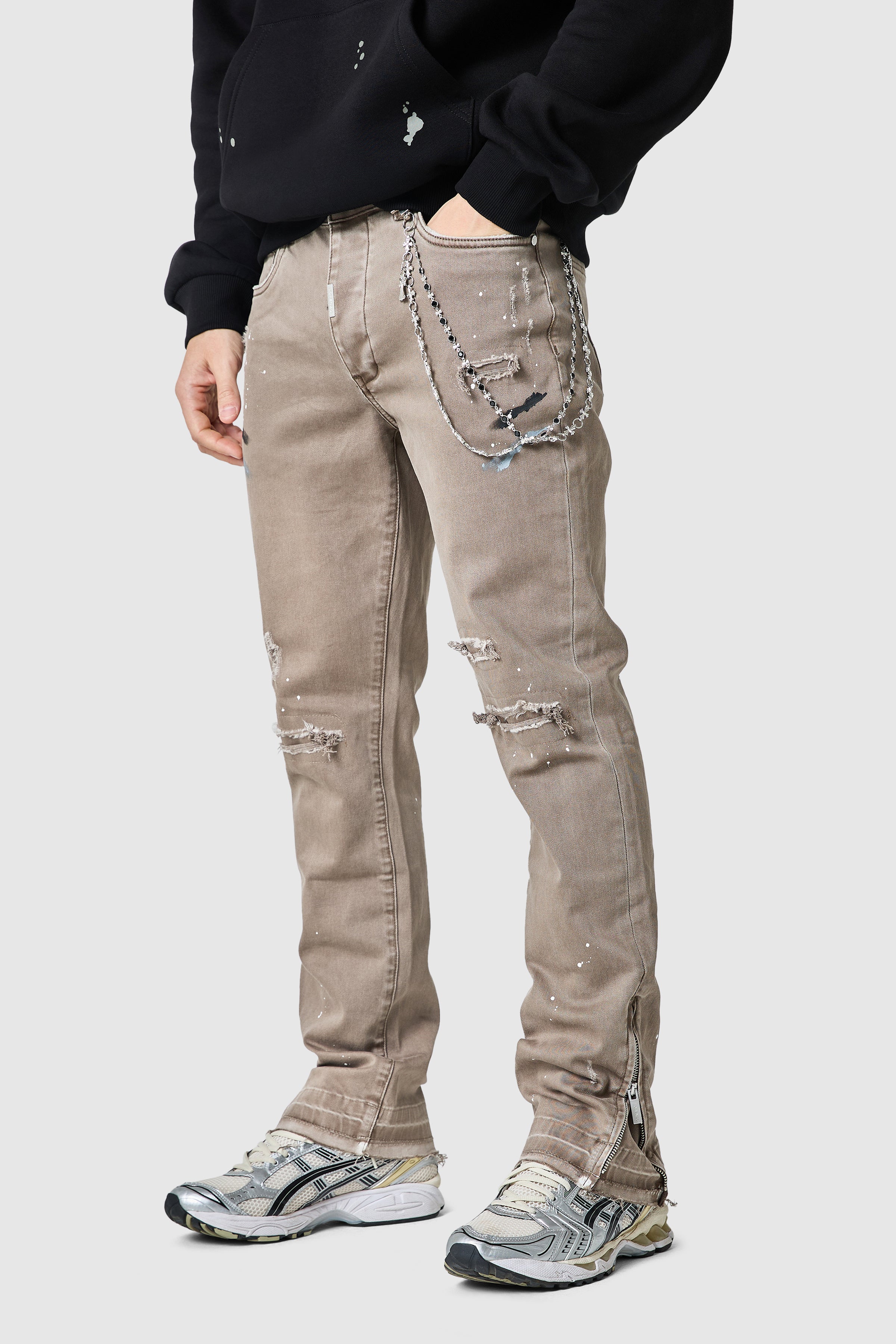 • Ankle zip detailing for adjustable stacking