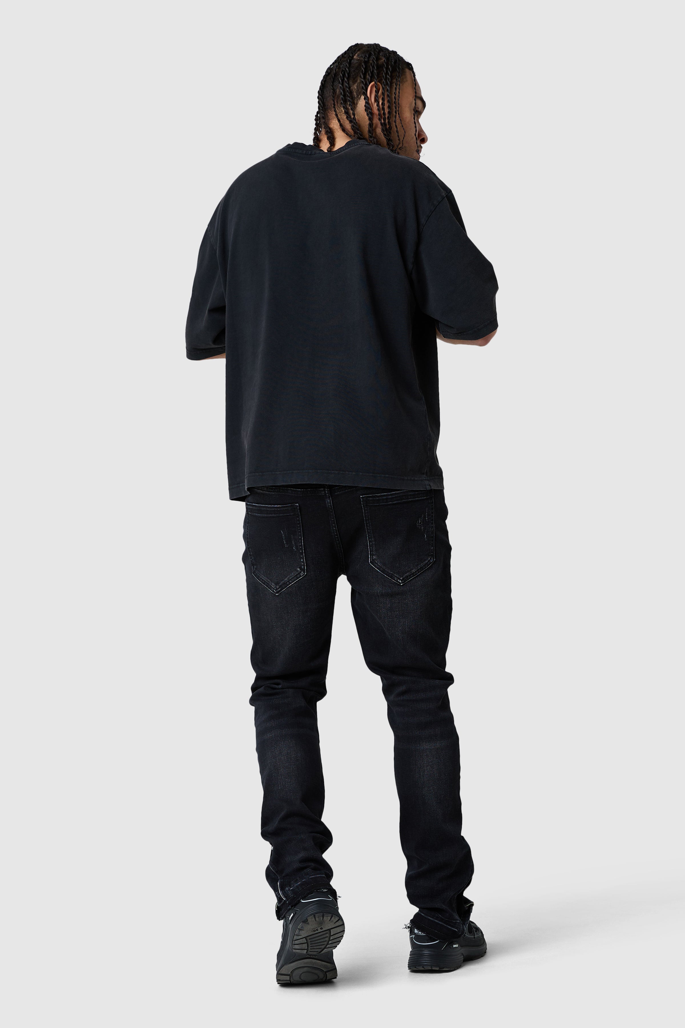 A contemporary slim jean designed for comfort and versatility. The Enzo Jean in Jet Black is crafted from a stretch base for ease of movement, offering a streamlined silhouette with natural stacking at the ankle. Subtle details elevate the design for an effortless, modern look.