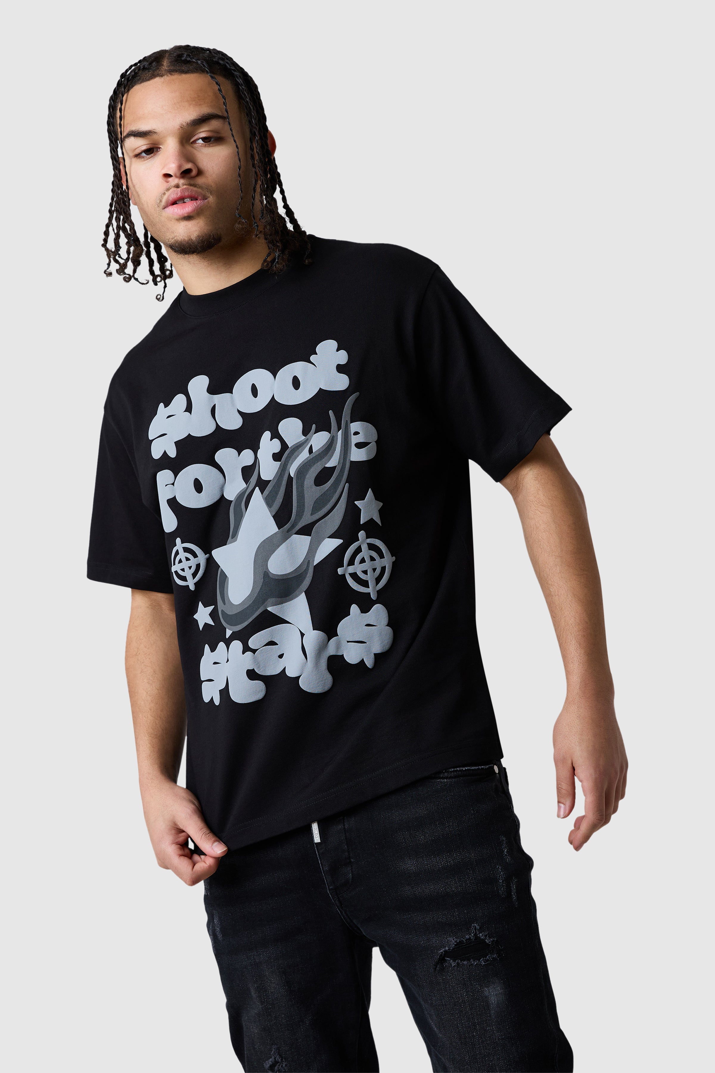 A relaxed, graphic tee designed for everyday style. The Target Tee is crafted from 100% cotton jersey for a soft, structured feel, featuring a drop shoulder silhouette and a bold puff print graphic on the front for a statement finish.