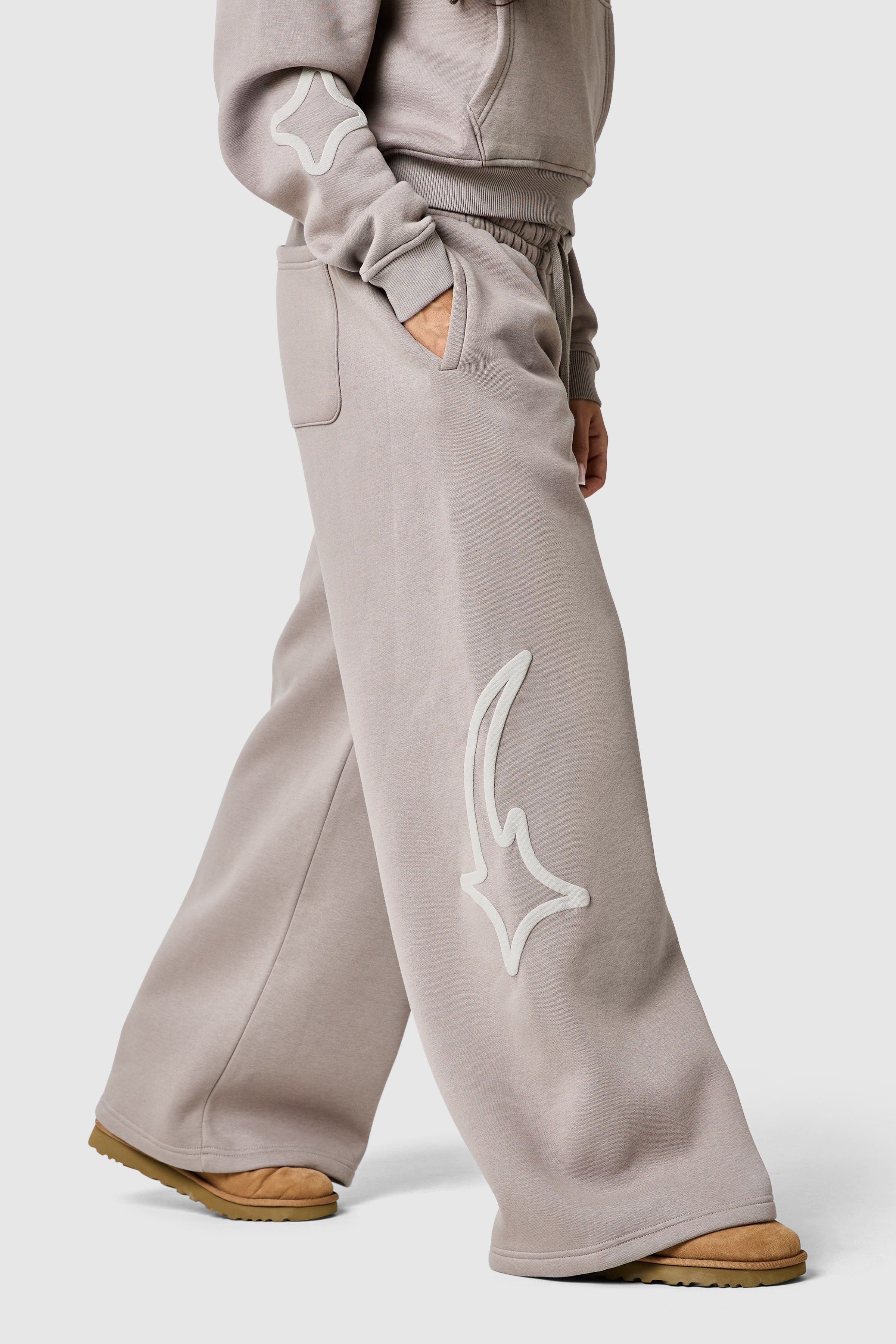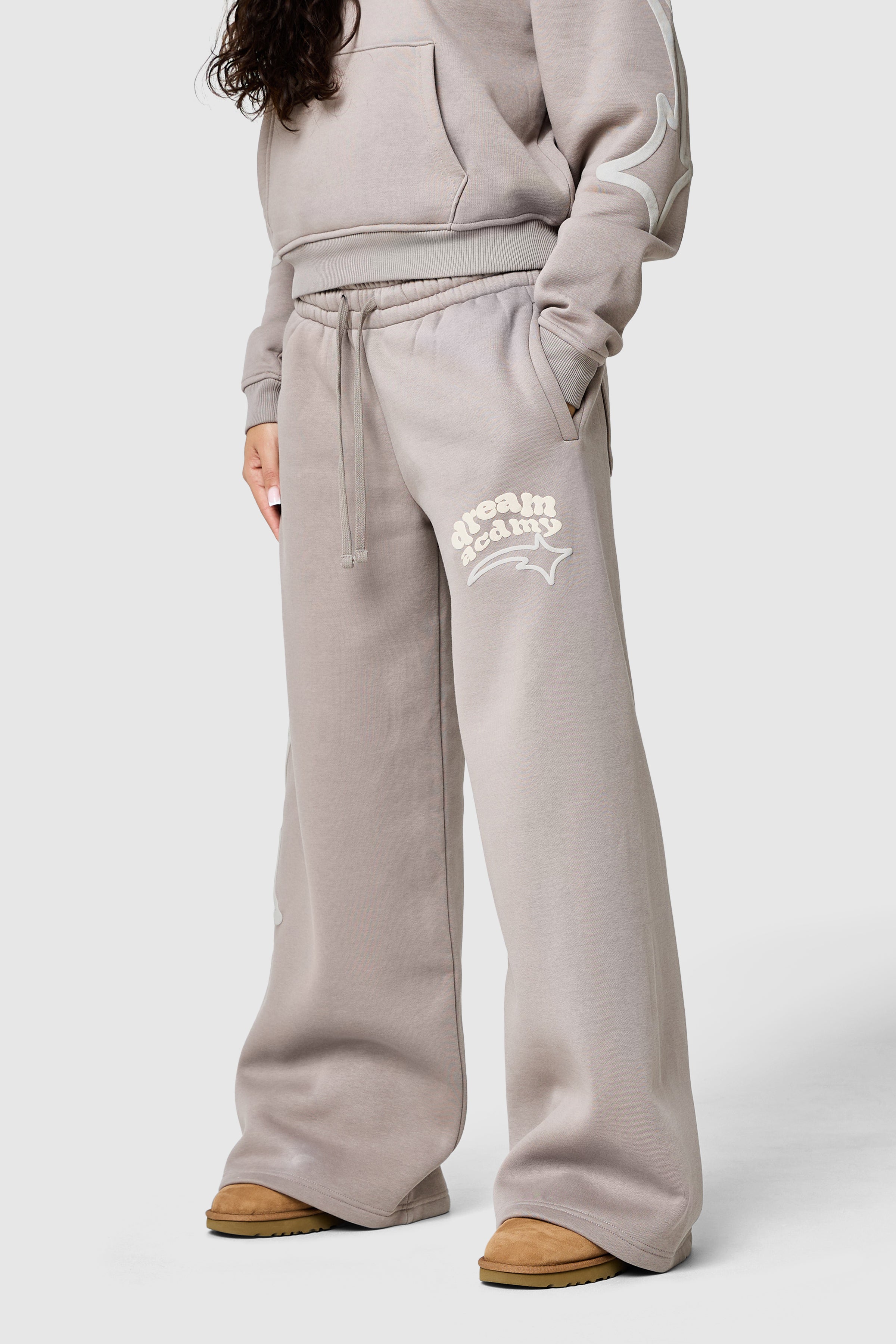 A relaxed jogger designed for comfort with bold, graphic details. The Soft Taupe Women’s Dream Acdmy Jogger is crafted from a soft 80% cotton, sweat (320 GSM), featuring a  elasticated waistband with tonal drawcords for a clean finish. Puff print graphics on the front and side leg add a statement touch.