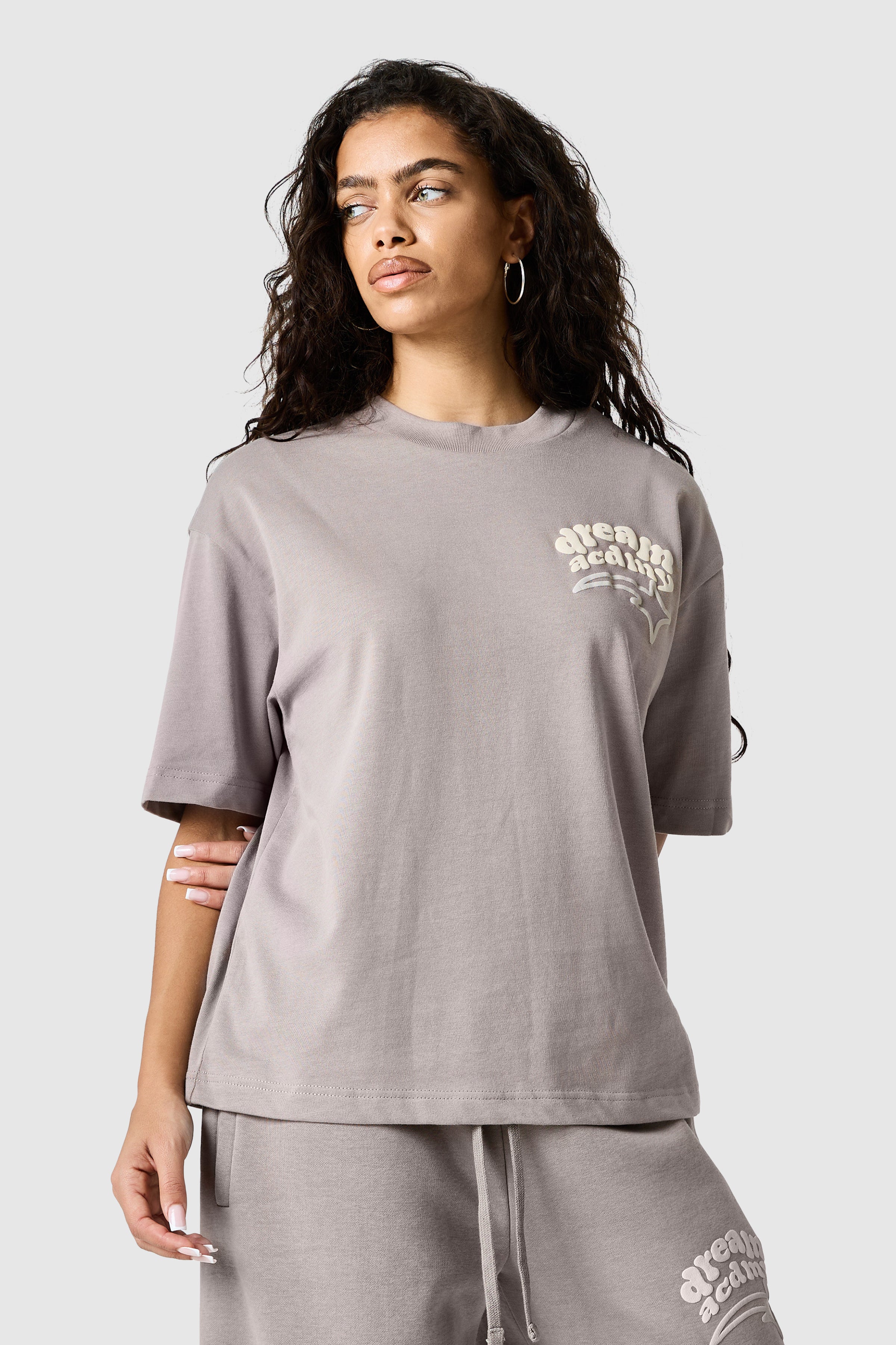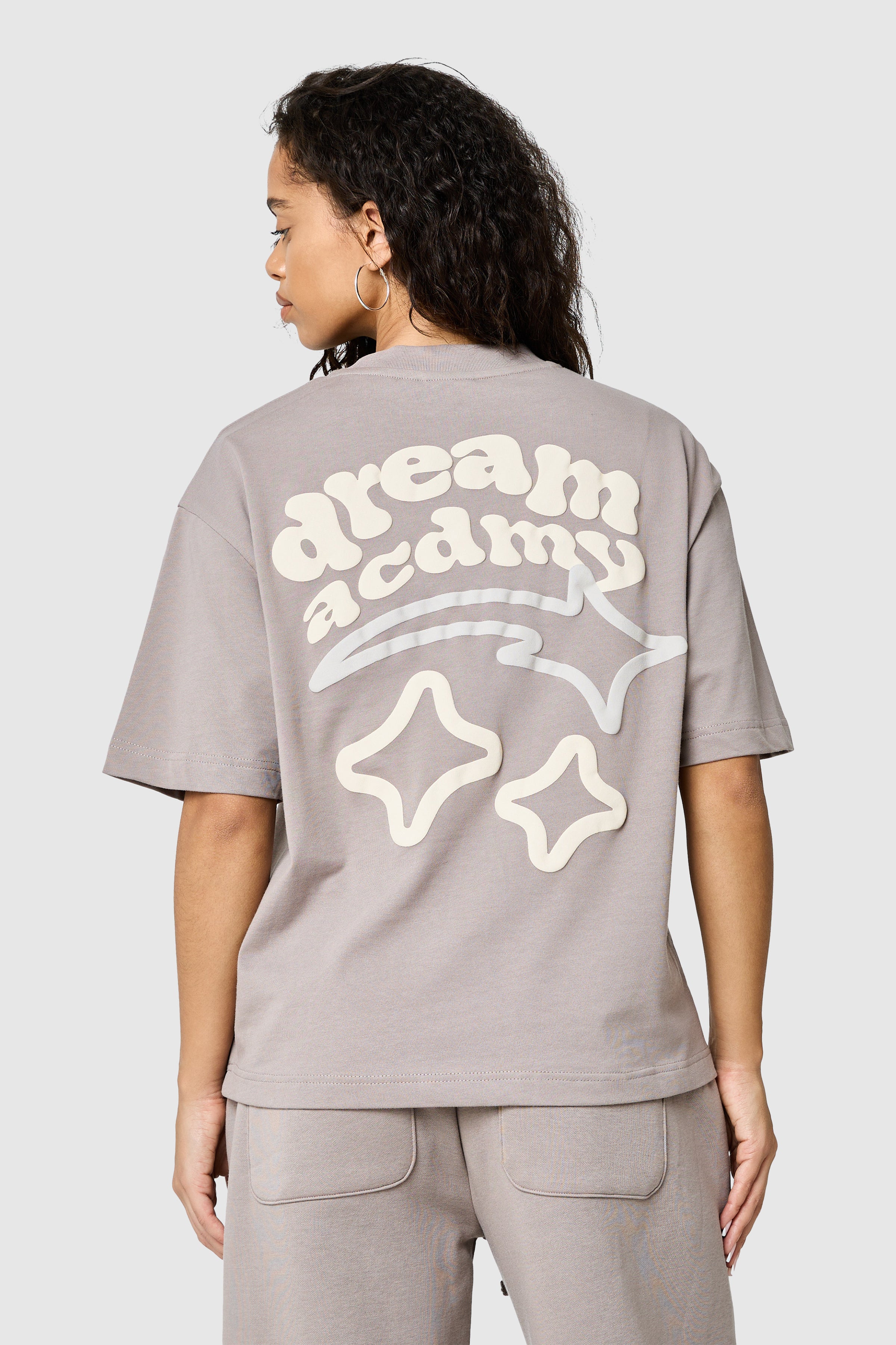 A statement cotton tee designed for everyday wear. The Women’s Dream Acdmy Tee in Soft Taupe is crafted from 100% cotton jersey (240 GSM) for a soft yet structured feel, featuring bold puff print graphics on the front and back for a modern, eye-catching finish.