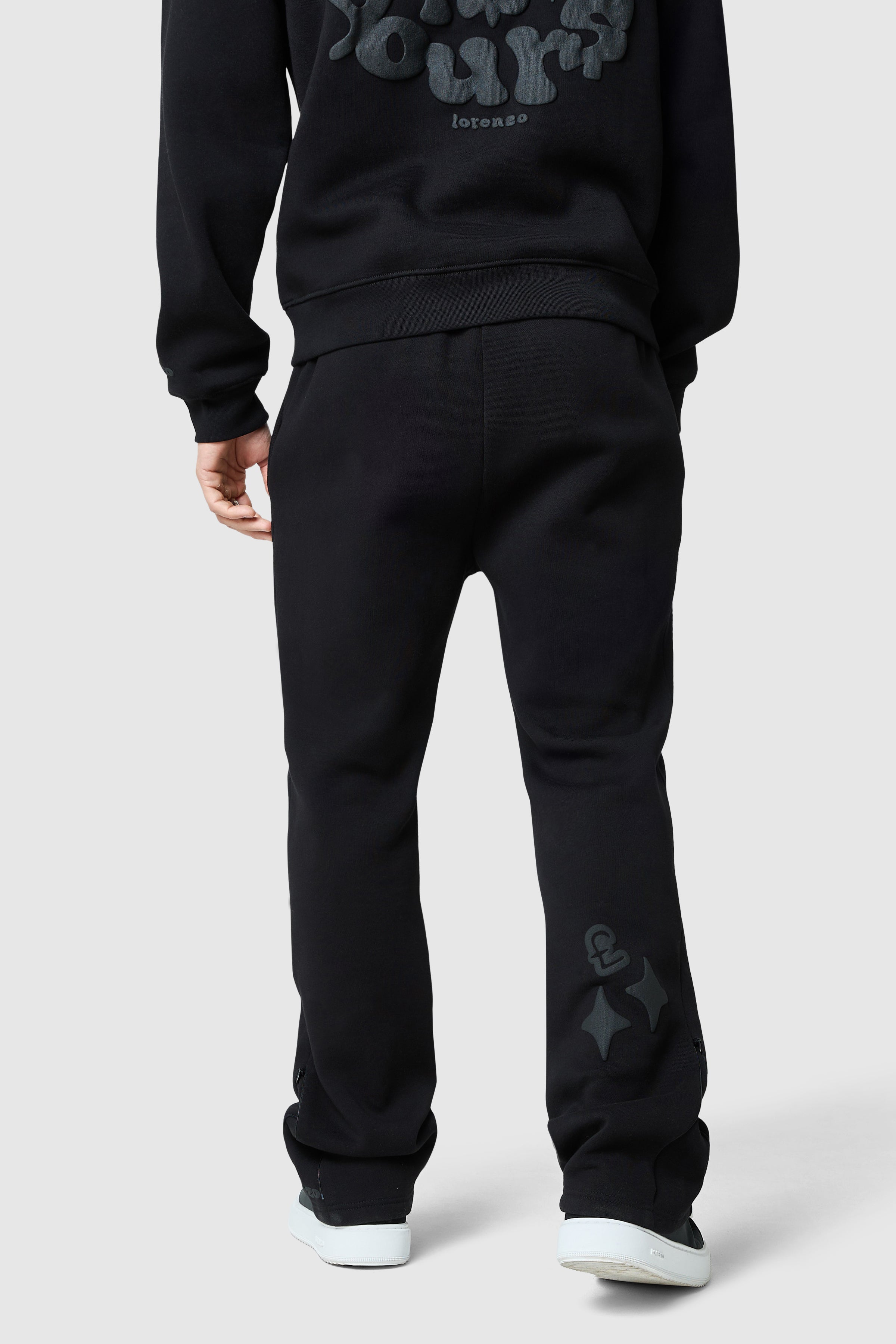 The World Is Yours Jogger 2.0 in Tonal Black features a loose, flared fit with a bold graphic screen print, blending comfort and style effortlessly. Pair with the matching hood for a relaxed, complete look.