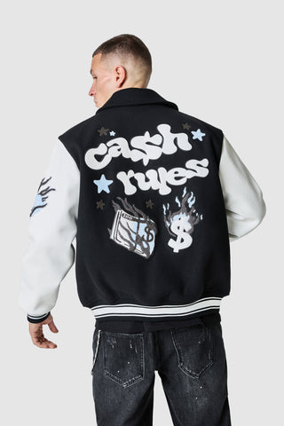 Cash Rules Varsity Jacket - Black