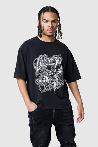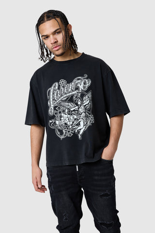 Cherub Tee - Black Acid Wash