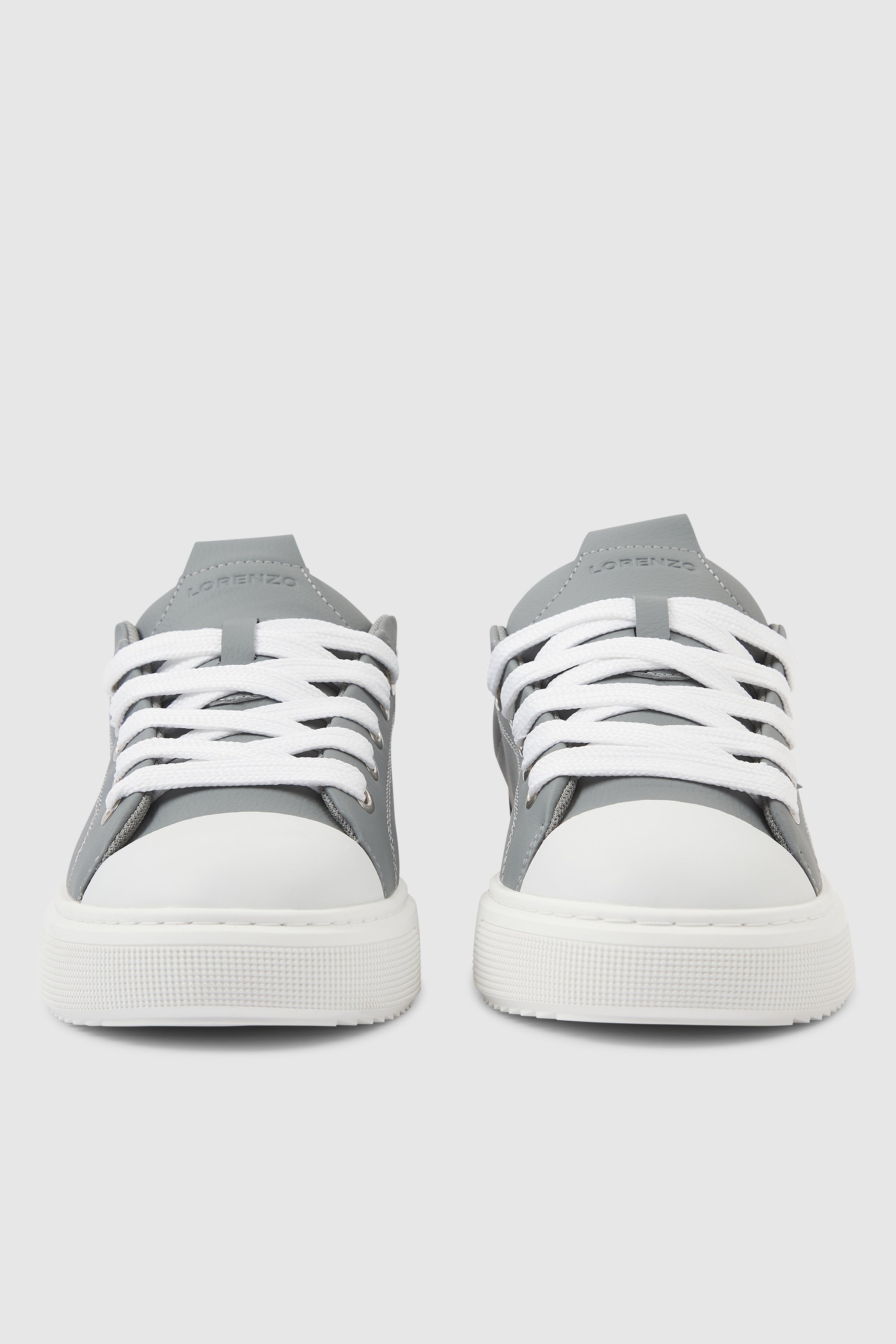 A clean, minimalist trainer with a sharp, structured profile. The Roma Trainer in Grey is crafted from smooth faux leather, delivering a refined finish with everyday durability. Subtle panel lines and contrast detailing enhance the streamlined silhouette, giving the style a modern, understated look.